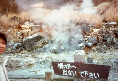 Anyway, one of our co-workers graciously offered to take us around to the Hakone region and look at the beautiful scenery (Thanks, Furuya-san). It really is beautiful there. And not nearly as crowded as you might think. (This is probably because everyone who was trying to get there got stuck on the 'freeway' (note: there's no such thing as a 'freeway' in Japan, they're all toll roads)). Anyway, there's a beautiful view of Mt. Fuji and Lake Ashi and you can head up to a nearby geothermal area and have yourself a nice sulfur hot spring boiled egg, which is reported to add seven years to your life for every one you eat. I had two, so I'm expecting to live at least long enough to pay my taxes this year.