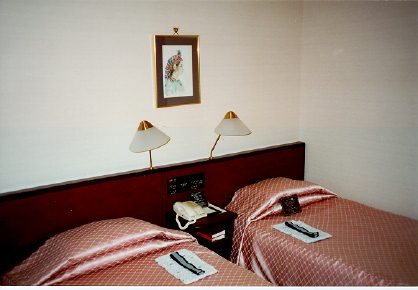 The hotels are really nice, and everybody bends over backwards to help you. Well, at $450 a night, I guess I would kind of expect that. It was only that expensive in Tokyo. In Hon Atsugi where I stayed, the rooms at the Royal Park Hotel were really nice and less than $100 per night to boot. And they still bent over backward to help you. Not that this is an advertisement or anything, mind you.