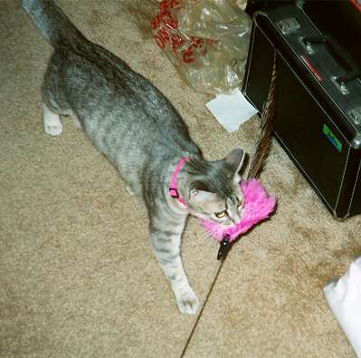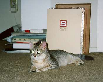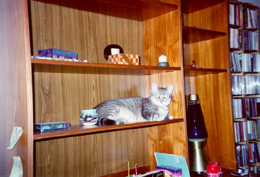 Well, this IS pretty stupid, but hey, she's the most popular thing on these pages as judged by the access list (although the Nerd Tour is catching up rapidly), so here it is; several action photos of my kitty. Besides, I have to get SOME use out of my scanner.